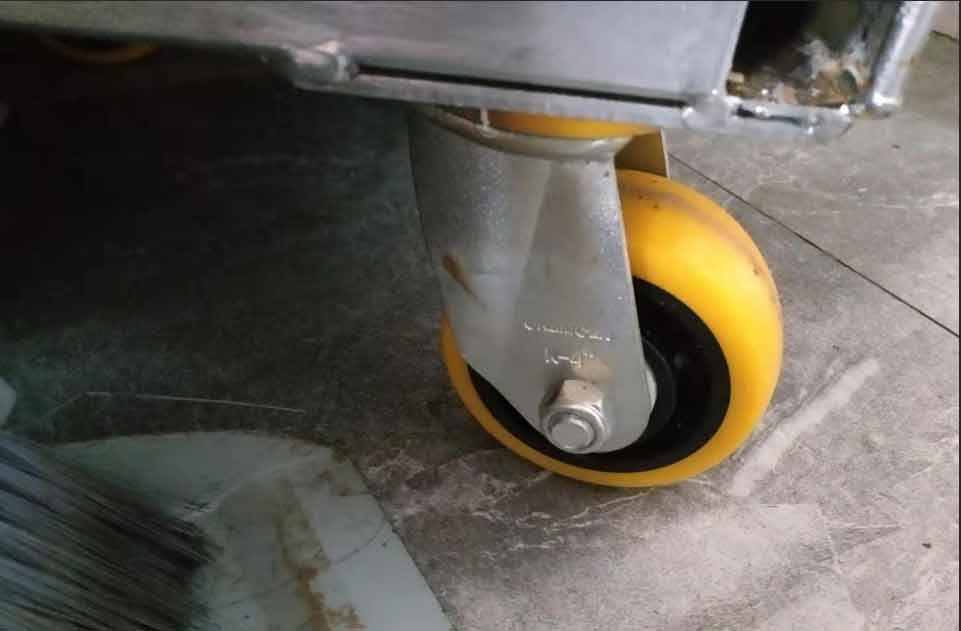 有一天,火锅店的服务员在搬推车的时候没拿稳,推车就从空中落了下来,推车他那一角,缺了。后面还是老板花了几大百找焊工重新焊好,然后买了脚轮,才有我安装脚轮的故事。