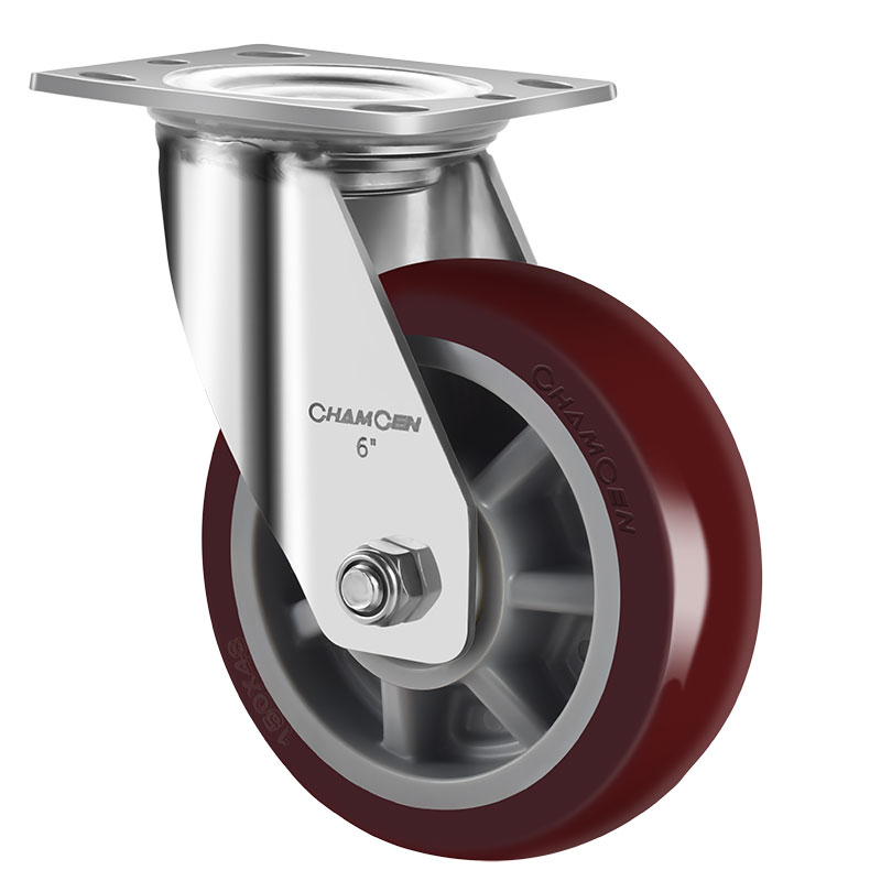 BC2-8寸不锈钢活动枣红色聚氨酯轮